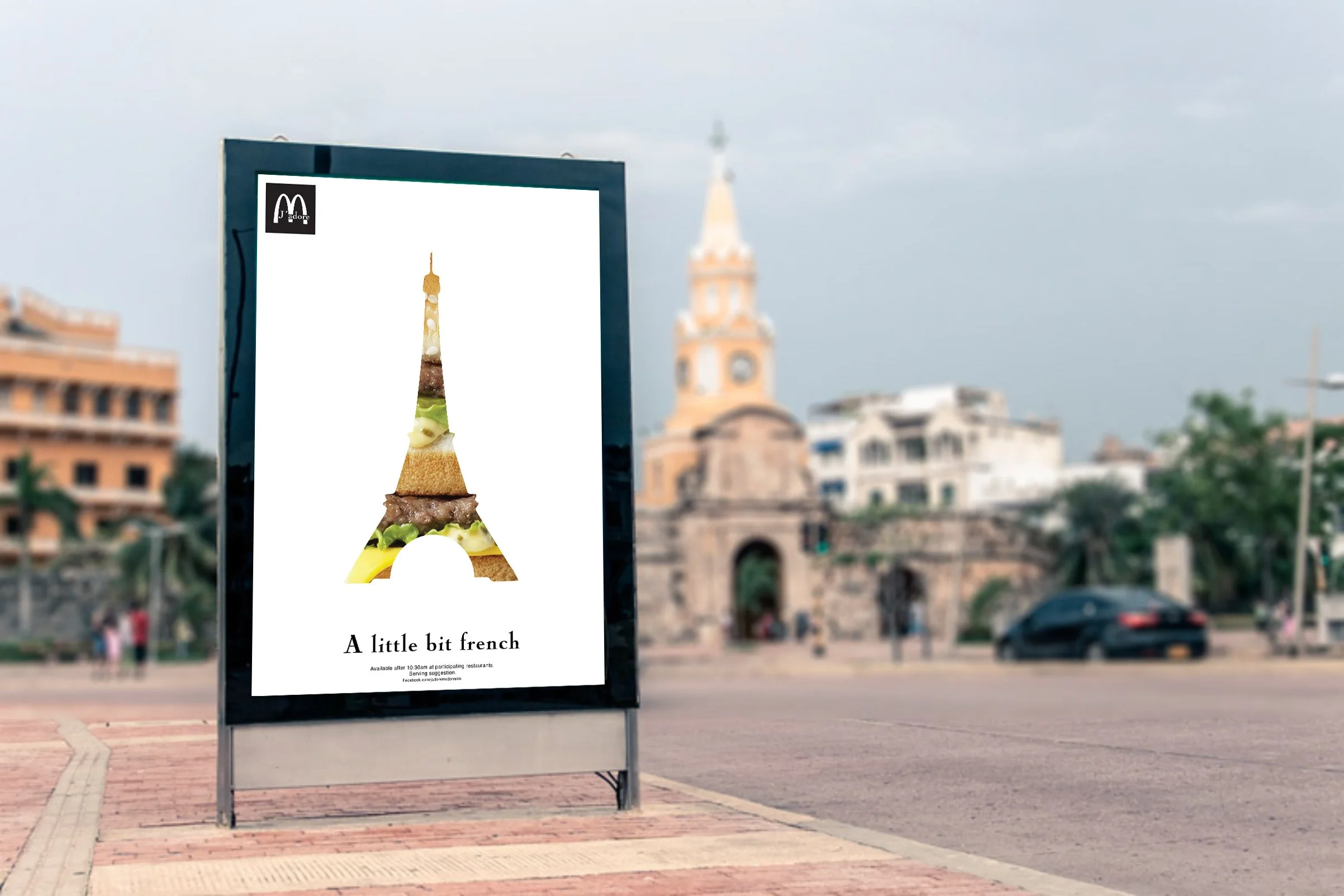 Combine fast food giant McDonald’s with a high end brand, including packaging execution, menu design, logo and poster.